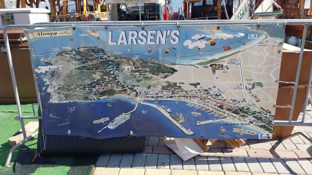 - Korsanlar Mağarası ve Fosforlu Mağara: Tekne turlarıyla ziyaret edilebiliyor, gece fosforlu parıltısıyla ünlü. Tekne turları Kızılkule’den Kleopatra Plajı’nı içeren turlar yapıyor. Tabi konsept şekilleri de muzip çok. Korsan şeklindeki tekneler, çizgi figürleri içeren tekneler. Çoğunluğu liman bölgesinde.