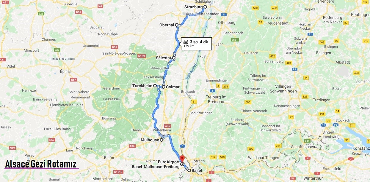 ✈️ Gerek Mulhouse-Basel-Frieburg Havalimanı’na (aeroport) yakınlığı gerekse Colmar ve Strasbourg şehirlerine ulaşım kolaylığı turstik turlarda bir uğrak noktası olmasına yol açıyor.