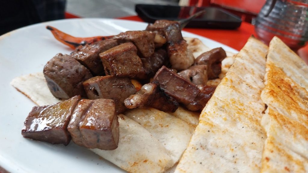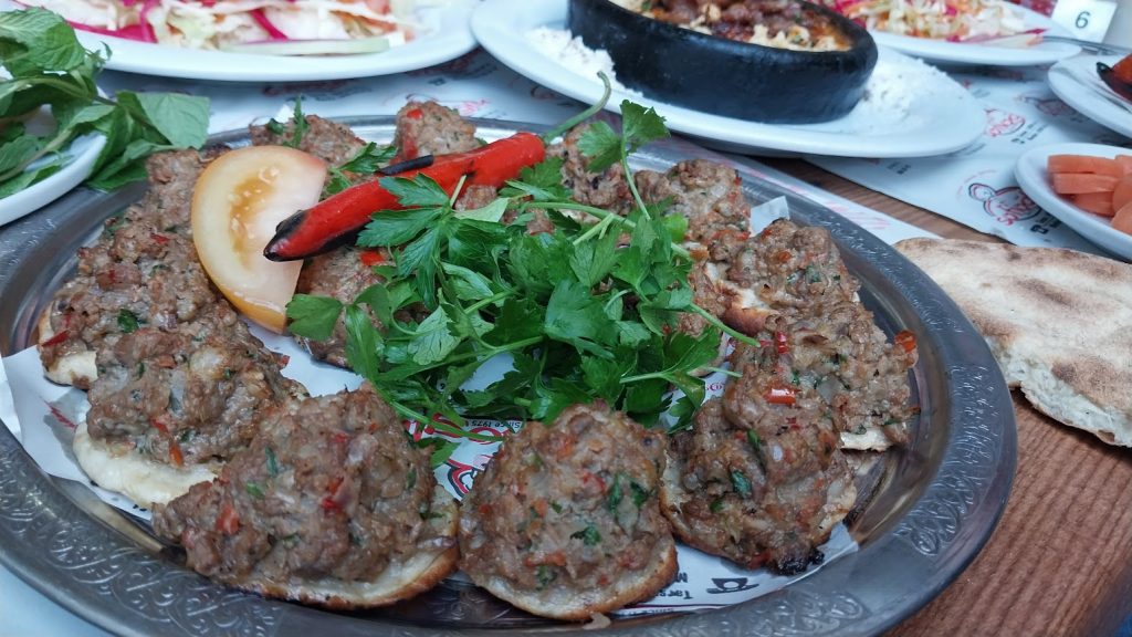 Tarsus’taki turumuzu tamamladıktan sonra Adana’ya günü tamamlamak üzere yol çıkıyoruz. Yaklaşık 1 saat sonra acıkma belirtileri gösterip aracımızı büyüksaat civarına park ettikten sonra yanımıza hediyelik cezerye ve lokum almak üzere Tarihi Yeni Uğur Helvacısı’na doğru yürüyoruz. Yalnız benzer bir alışveriş içerisindeyseniz mutlaka linkli işaretlediğim yere gidiniz. Çarşı içinde aynı isimde birkaç lokasyon var. bu yer üretimini bizzat yapan yerdir. İçerde neler yok ki .. Madonna lokumundan cezeryelere kadar çeşit çeşit tatlılar, atıştırmalıklar ve şekerlemeler. Tüm iştahımızı burada bırakmayım tutup hediyeliklerimizi elimize alıp Ciğerci Mehmet’e ulaşıyoruz. Adana denilince en çok bilinen en meşhur mekan Mehmet’in yerinde mistik kazancılar, kalaycılar ve metalci işyerlerinin arasında sokağa kuruluyoruz. Masaya sipariş vermeden daha öncü birlikler salatalar, ezmeler ve aperatifler masaya otomatik olarak getiriliyor. Adana’nın genel kuralıdır, ne yerseniz yeyin gelirler. Sipariş olarak kebap, şiş ve ciğer veriyoruz. Ortalamanın üstü lezzetleri Adana’nın havası ile ağzımızda şenlendirmenin tarifi yok. Deneyimi anlatmak için ise Türkçemiz yetersiz kalıyor.
